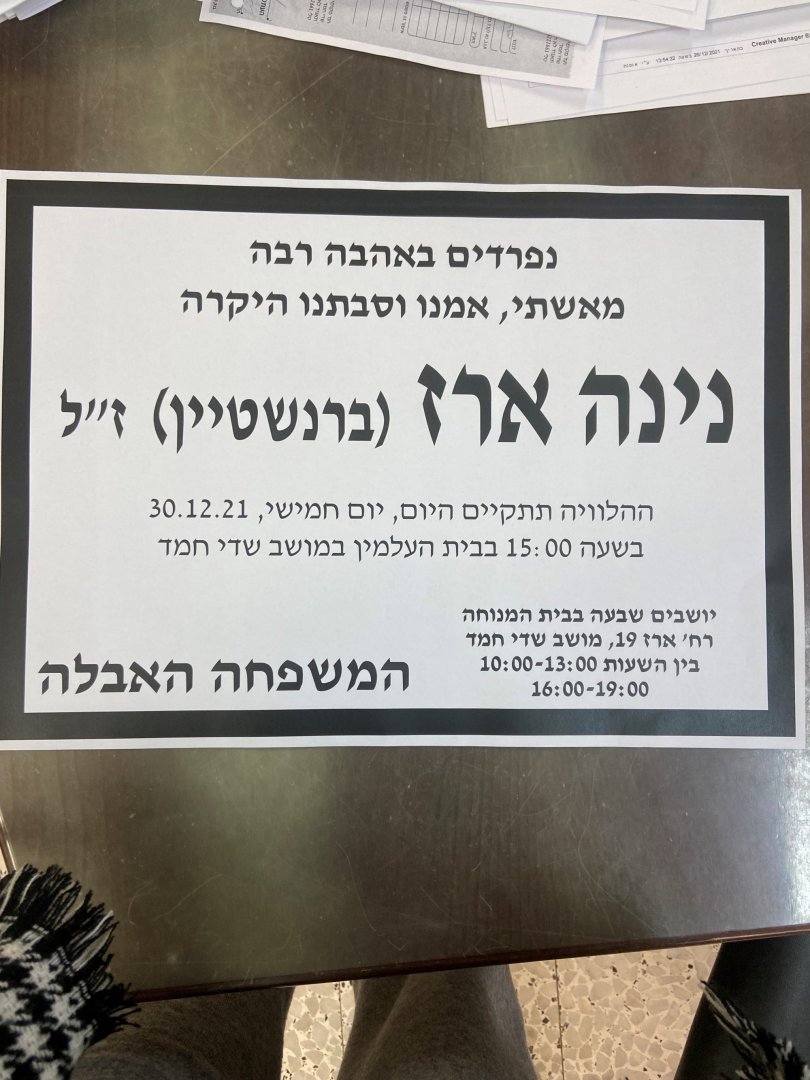 תנחומינו לנתן ולמשפחה עם לכתה של נינה. זמירה ויהושע שחר😢